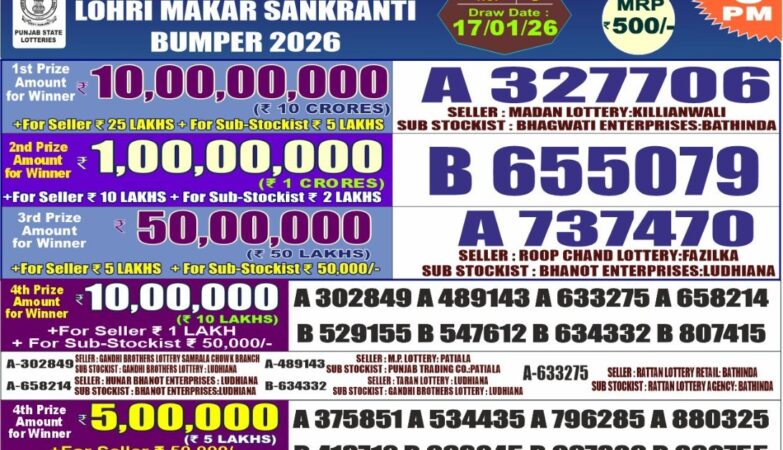 The Punjab State DEAR Lohri Makar Sankranti Bumper 2026 lottery result has been officially declared today, 17 January 2026, at…